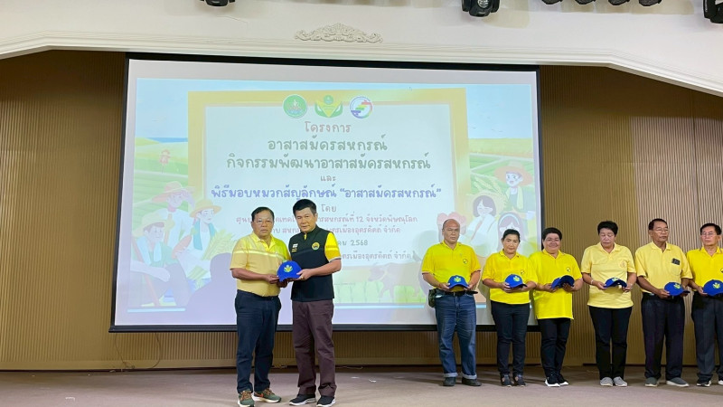 วันที่ 8 กรกฎาคม 2568 นายเกรียงศักดิ์ หางนาค ผู้อำนวยการศูนย์ถ่ายทอดเทคโนโลยีการสหกรณ์ที่ 12 จังหวัดพิษณุโลก พร้อมด้วยนางพัสจณี สมเกื้อ นักทรัพยากรบุคคลชำนาญการ ร่วมกับสำนักงานสหกรณ์จังหวัดอุตรดิตถ์ จัดโครงการอาสาสมัครสหกรณ์ กิจกรรมพัฒนาอาสาสมัครสหกรณ์ และพิธีมอบหมวกสัญลักษณ์ “อาสาสมัครสหกรณ์” ประจำปี 2568 โดยมีนายกฤตพจน์ ไชโย สหกรณ์จังหวัดอุตรดิตถ์ เป็นประธานพิธี และมอบหมวกสัญลักษณ์ “อาสาสมัครสหกรณ์” ให้กับอาสาสมัครเกษตรประเภทอาสาสมัครสหกรณ์ ของสหกรณ์การเกษตรเมืองอุตรดิตถ์ จำกัด 15 คน ณ ห้องประชุมสหกรณ์การเกษตรเมืองอุตรดิตถ์ จำกัด อำเภอเมือง จังหวัดอุตรดิตถ์