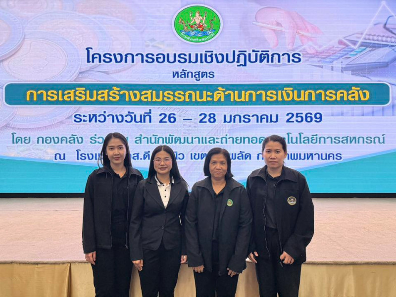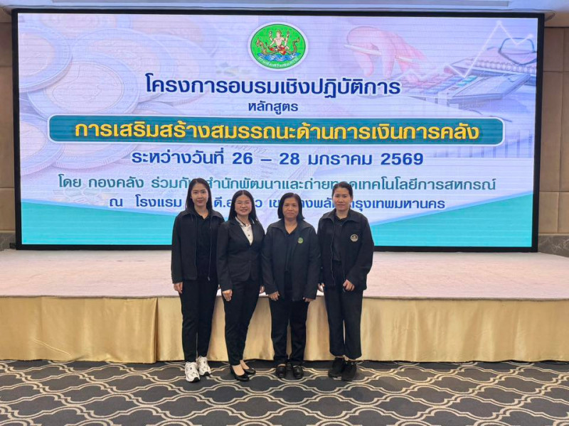 สำหรับโครงการอบรมเชิงปฏิบัติการ หลักสูตร "การเสริมสร้างสมรรถนะด้านการเงินการคลัง" จัดขึ้นระหว่างวันที่ 26 - 28 มกราคม 2569 โดยมีวัตถุประสงค์เพื่อให้ผู้เข้าอบรมได้รับความรู้ความเข้าใจเกี่ยวกับกฎหมายและระเบียบการเงินการคลัง สามารถปฏิบัติงานได้อย่างถูกต้องเป็นไปตามระเบียบที่เกี่ยวข้อง เกิดความพร้อมในการปฏิบัติหน้าที่อย่างมีประสิทธิภาพ กลุ่มเป้าหมายประกอบด้วย เจ้าหน้าที่ในสังกัดส่วนกลางและส่วนภูมิภาคที่ได้รับมอบหมายให้ปฏิบัติงานด้านการเงินและบัญชี หรือพัสดุ วิทยากร เจ้าหน้าที่ที่เกี่ยวข้อง และผู้สังเกตการณ์ รวม 221 คน