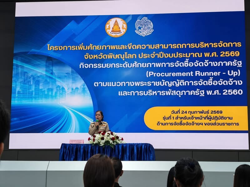 วันที่ 24 กุมภาพันธ์ 2569 นายเกรียงศักดิ์ หางนาค ผู้อำนวยการศูนย์ถ่ายทอดเทคโนโลยีการสหกรณ์ที่ 12 มอบหมายให้ นางนิศาชล มณีกาศ เจ้าพนักงานธุรการชำนาญงาน เข้าร่วมอบรมโครงการเพิ่มศักยภาพและขีดความสามารถการบริหารจัดการจังหวัดพิษณุโลก ประจำปีงบประมาณ พ.ศ. 2569 กิจกรรมยกระดับศักยภาพการจัดซื้อจัดจ้างภาครัฐ (Procurement Runner - Up)ตามแนวทางพระราชบัญญัติการจัดซื้อจัดจ้างและการบริหารพัสดุภาครัฐ พ.ศ. 2560 โดยมี นางสาวสรินรัตน์ เกิดสกุลรุ่งโรจน์ รองผู้ว่าราชการจังหวัดพิษณุโลก เป็นประธานเปิดโครงการ ณ หอประชุมนครสรลวงสองแคว อาคารบึงราชนก องค์การบริหารส่วนจังหวัดพิษณุโลก