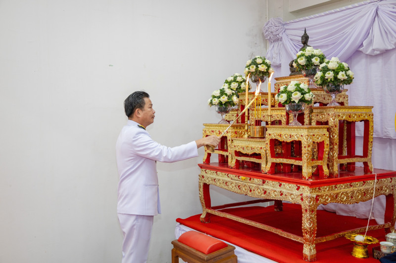 ภายในพิธี ผู้ว่าราชการจังหวัดพิษณุโลกได้จุดธูปเทียนบูชาพระรัตนตรัย ถวายความเคารพหน้าพระฉายาลักษณ์ และถวายธูปเทียนแพเบื้องหน้าพระฉายาลักษณ์ จากนั้นพระสงฆ์จำนวน 10 รูป ได้ประกอบพิธีเจริญพระพุทธมนต์ โดยผู้ว่าราชการจังหวัดพิษณุโลกและนายเหล่ากาชาดจังหวัดพิษณุโลก พร้อมด้วยหัวหน้าส่วนราชการ ได้ถวายผ้าไตรและเครื่องไทยธรรมแด่พระสงฆ์ ก่อนที่ผู้ว่าราชการจังหวัดพิษณุโลกจะกรวดน้ำและกล่าวถวายพระพรชัยมงคล เพื่อแสดงออกถึงความจงรักภักดีและสำนึกในพระมหากรุณาธิคุณ